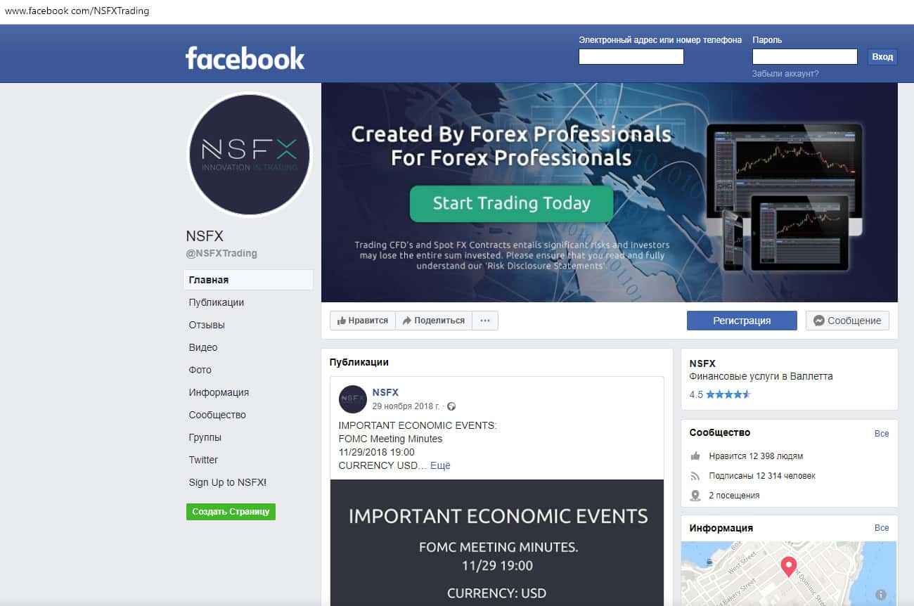 Чтобы поддерживать постоянный приток лохов в свой проект, форекс-мошенники NSFX Affiliates решили создать несколько групп в различных социальных сетях и накрутить подписчиков. Далее представлен скриншот и ссылка на группу в Фейсбук facebook com/NSFXTrading