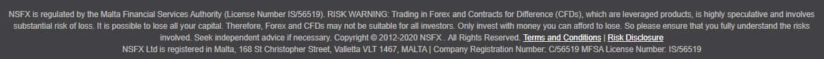 На сайте также мы нашли информацию, касательно регуляции деятельности шулеров НСФХ Аффилиейтс. Мелким шрифтом внизу сайта указано, что они имеют лицензию от мальтийского регулятора MFSA, но предоставлять какого-либо доказательства они не собираются. А мы в свою очередь, верить этой писанине не будем.