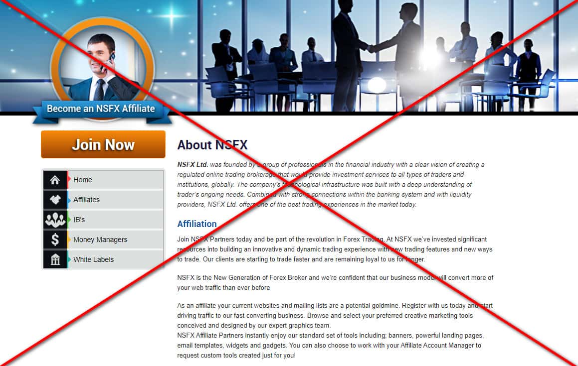 Краткий обзор сайта мошенников NSFX Affiliates