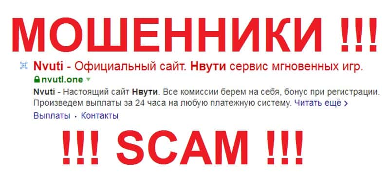 На информационном сайте seoseed ru отыскана статья о том, что мошенническая контора Nvuti One не выплачивает денежные средства игрокам своего сайта, а все положительные отзывы о конторе - заказные. Ни в коем случае нельзя связываться с жуликами Нвути !!!