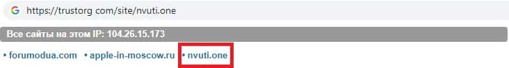На специализированном интернет-ресурсе по проверке сайтов на мошенничество трусторг ком была замечена информация об ip-адресе скам-организации Nvuti One, а именно то, что их жульнический сайт находится на одном ip-адресе с интернет-магазинами. Следовательно доверять жуликам Нвути нельзя !!!
