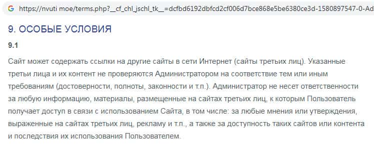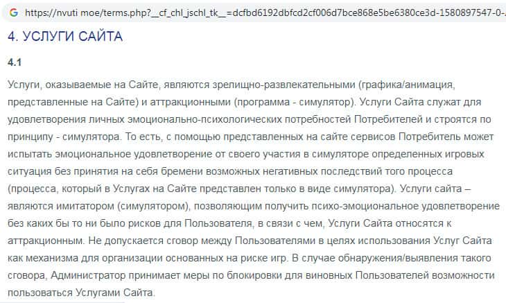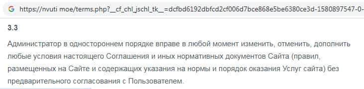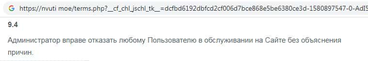 Мошенники Nvuti One уведомляют о том, что представители данного интернет-лохотрона вправе отказать в обслуживании пользователям сайта, не объясняя по какой именно причине это произошло. Из этого можно сделать вывод о том, что шулера Нвути могут в удобный им момент отказать Вам в выводе денежных средств.