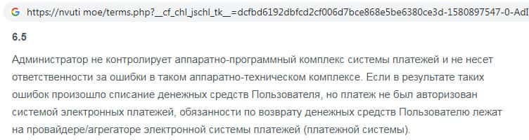 Жульническая организация Нвути не несет никакой ответственности за то, перечислены ли будут денежные средства, а в случае каких-либо возникших проблем с переводом денежных средств данная контора будет обвинять платежную систему, либо же банк, при помощи которого осуществлялся перевод.