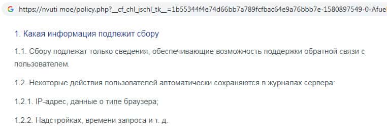 - Политика конфиденциальности на мошенническом сайте Nvuti One