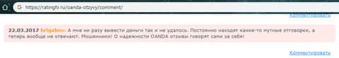 Аферисты ОАНДА не вывели деньги еще одному клиенту