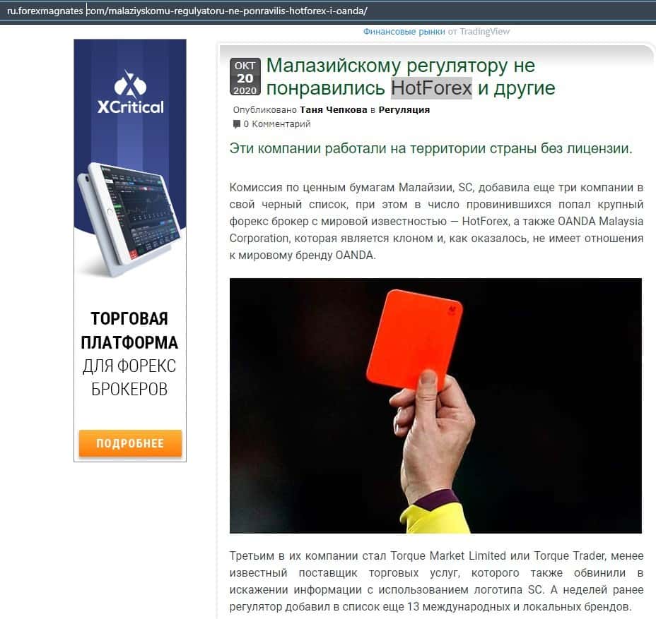 В данном материале в подробностях описывается, что контора ОАНДА попала в черный список брокеров, так как малазийскому регулятору не понравилось как они ведут деятельность.