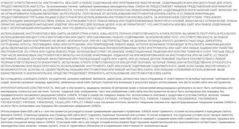 После у лохотрона ОАНДА следует отказ о том, что мошенники OANDA не несут никакой ответственности за любую инвестиционную информацию предоставленную на сайте, а так же убытки которые понесут клиенты в результате ее использования. На изображении, расположенном ниже, вы можете увидеть очередной отказ от ответственности жуликов ОАНДА.