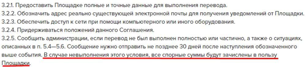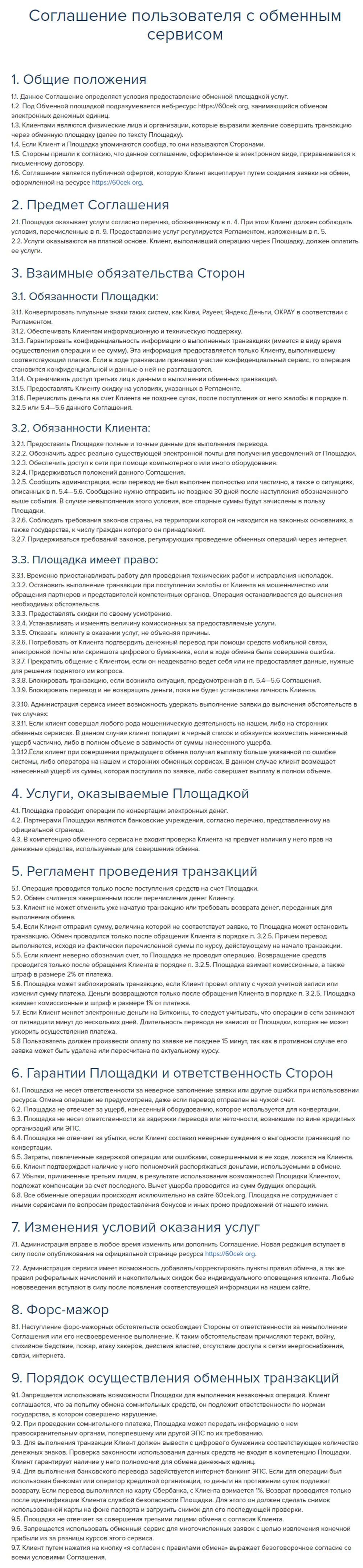 В тексте есть несколько ловушек. Например, жулики Обменник 60 Сек установили себе "срок давности", после которого могут безнаказанно присваивать все спорные суммы себе.