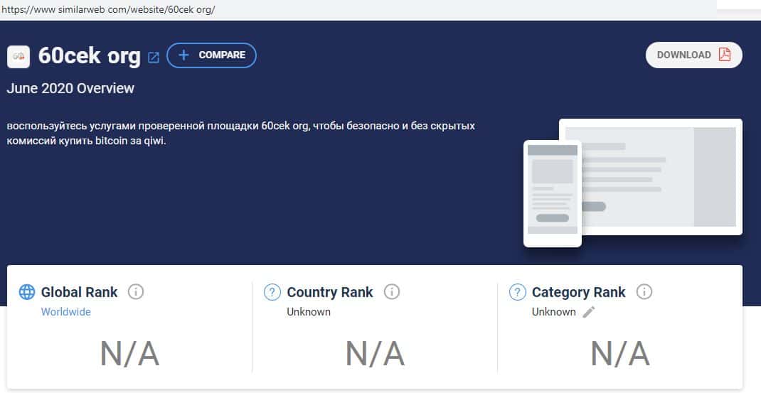 Согласно интернет-порталу similarweb com, домен мошенников 60Cek Org настолько незначителен, что даже нет возможности определить источники трафика, что настораживает.