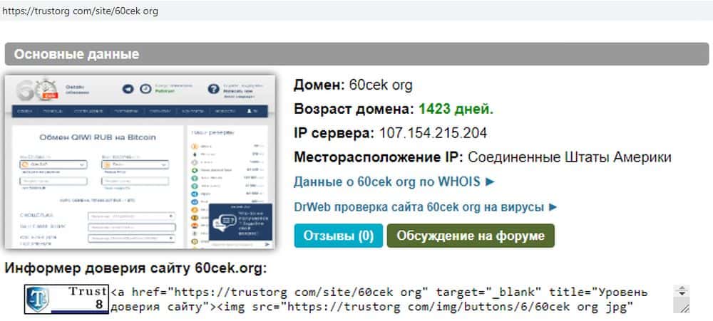 60cek org - сайт-ловушка лохотрона Обменник 60 Сек