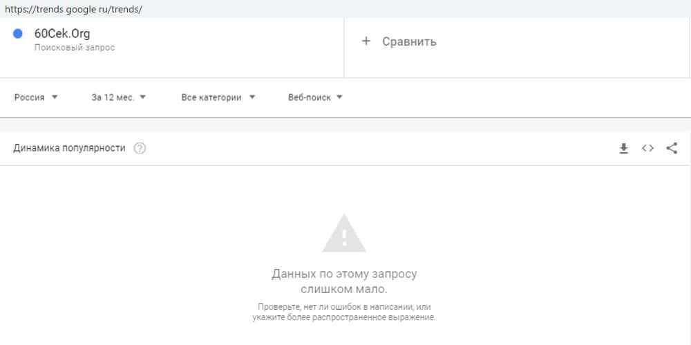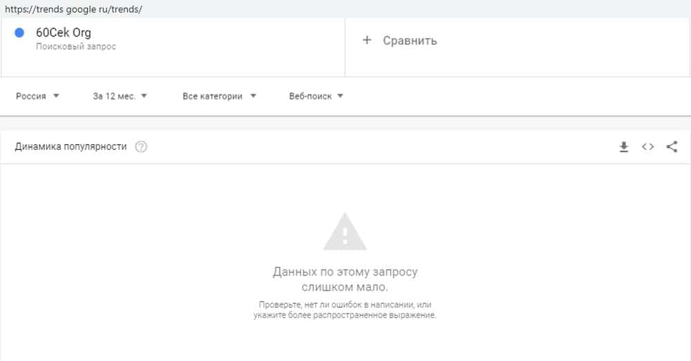 - Оценка популярности липового обменника 60Cek Org в поисковите Гугл