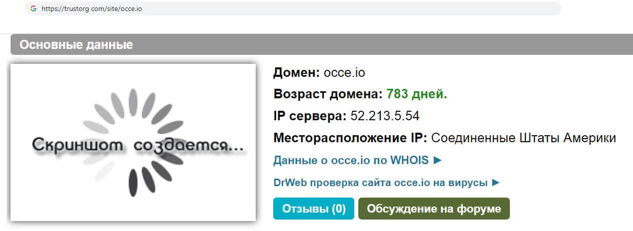 - Информация о настоящем возрасте компании аферистов OCCE io