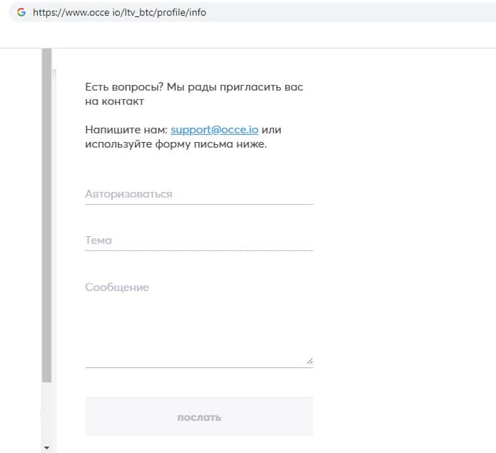 Мы проверили адрес электронной почты компании аферистов OCCE io который она указала в качестве контактного. Оказалось, что почта существует, но это не значит, что компания будет отвечать на каждое письмо. Пользователи будут интересны компании до тех пор, пока они вкладывают деньги, как только инвестиции закончатся, то прекратиться и общение с компанией.
