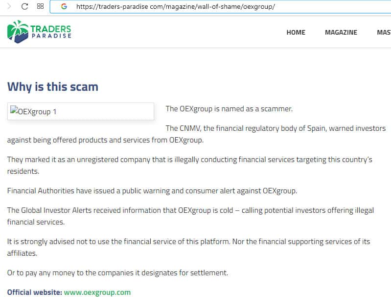 traders-paradise com - сайт с отзывом о шараге OEXGroup
