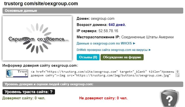 На сайте Доверие в Сети также отсутствует информация о брокере OEXGroup. Видно, авторы программы постарались над тем, что бы отзывы были тщательно зачищены. И да, местоположение США, хотя на сайте пишут Лондон. Бесплатный сыр только в мышеловке, а не в интернете.