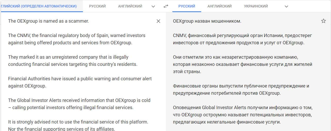 Отзывов о жуликах OEXGroup в интернете найти очень сложно, можно сказать что их нет. Мы нашли один обзор на сайте traders-paradise com. Они утверждают, что лоховозка не имеет никаких документов для работы. Брокер находится в Лондоне, Великобритания. Остерегайтесь подобных брокеров.