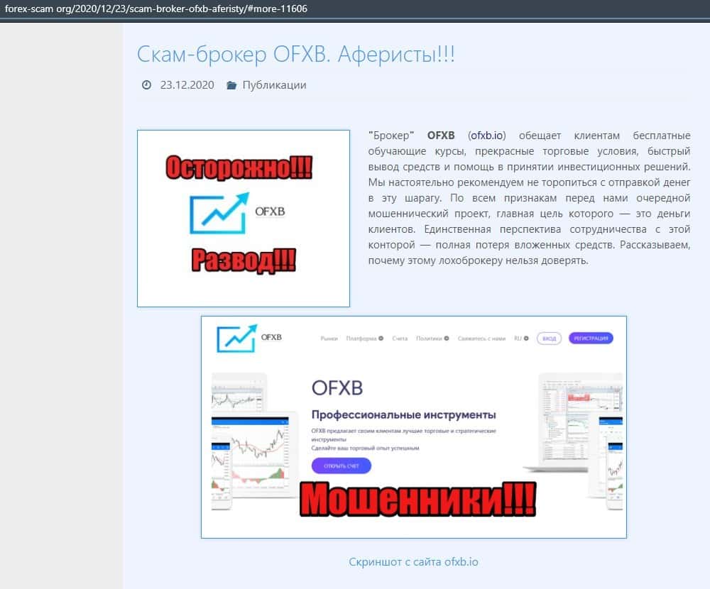 Ссылки на источники информации о фирме мошенников OFXB io:
