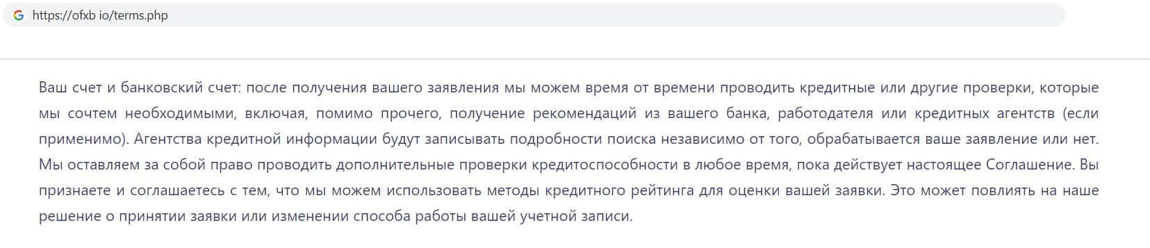 Клиентское соглашение компании финансовых мошенников ОФХБ