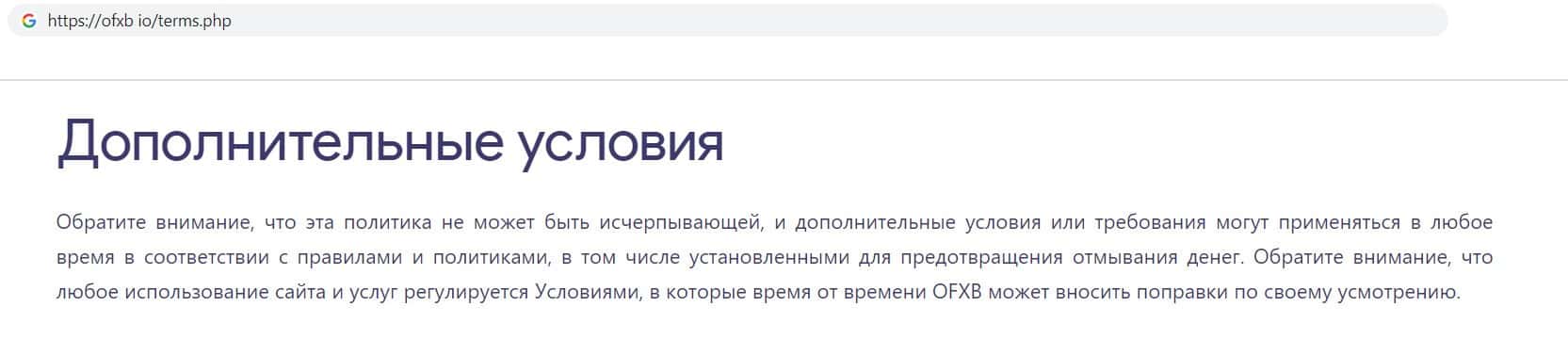 Фирма лохотронщиков ОФХБ указала, что данный документ регулируется условиями самой компании, но фирма в праве менять эти условия в любой момент по своему усмотрению.