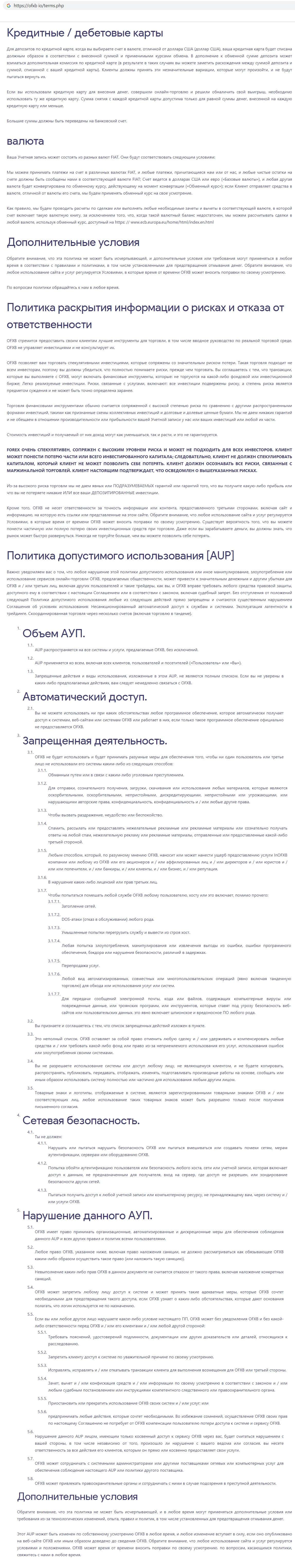 Так же мы предоставляем вторую часть полного клиентского соглашения компании финансовых разводил OFXB, которая так же наполнена не менее подозрительными пунктами.