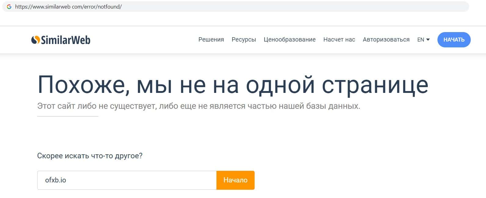 Мы решили проверить трафик главного сайта разводил ОФХБ через сайт similarweb com. Но оказалось, что международный сервис не знает о существовании компании мошенников.