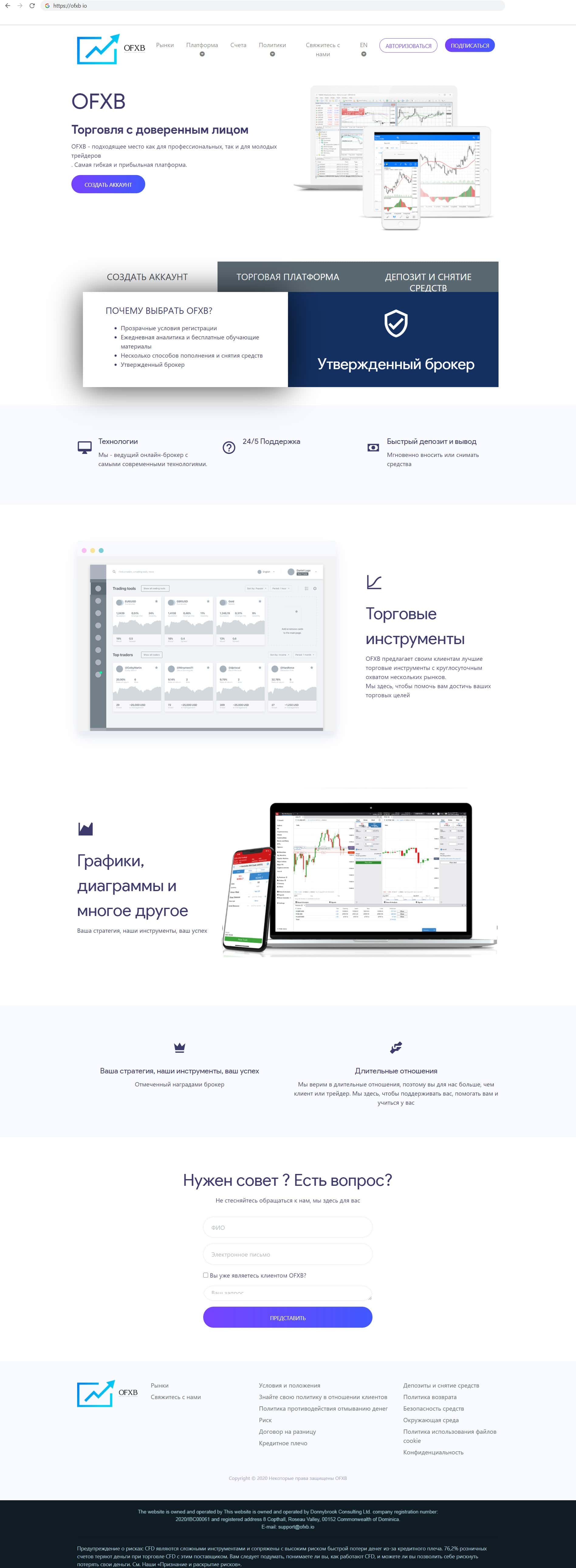 Внешний вид главного сайта разводил OFXB io