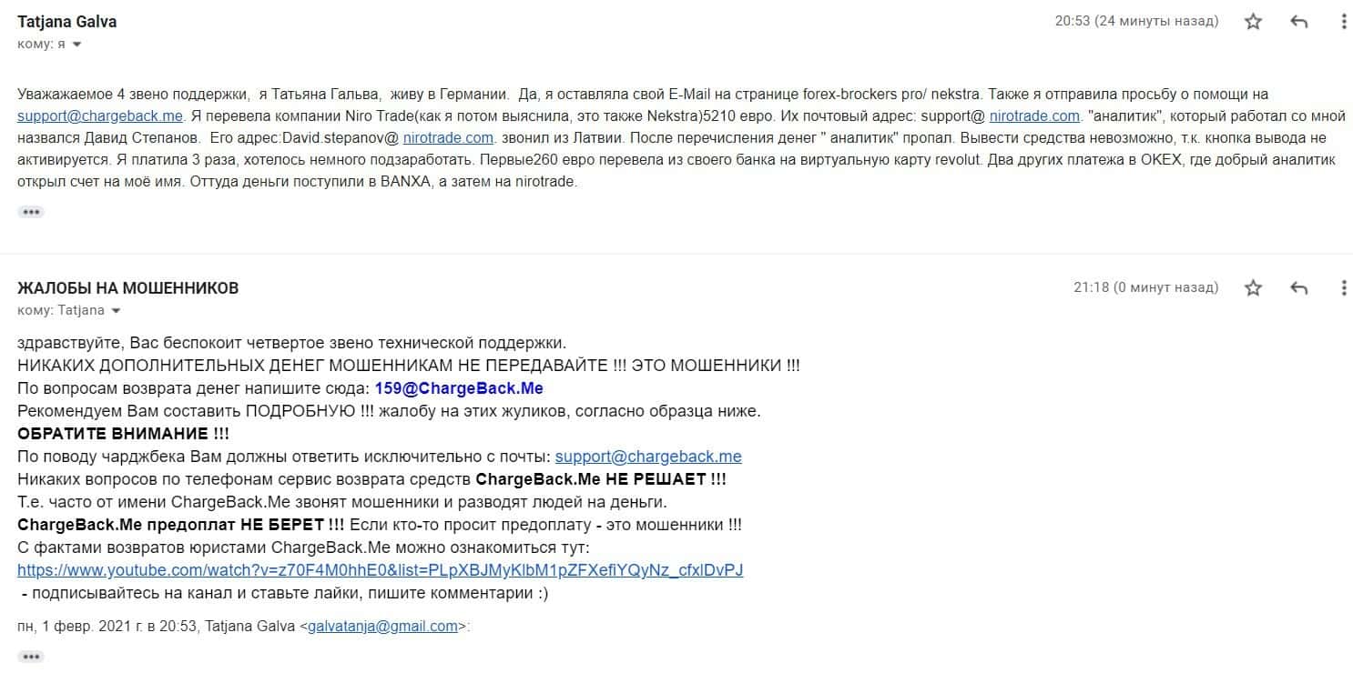 На почтовый адрес сайта по сбору информации о деятельности мошенников Форекс пришла жалоба о том, что аферисты Окекс действуют сообща с конторами Revolut, Ниро Трейд и Некстра.