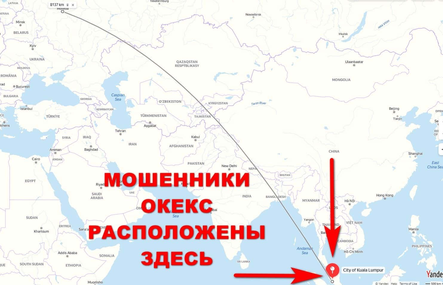 Мошенническая контора ОКекс закинула свой офис в Малайзию, откуда они смело могут обворовывать русскоязычное население, не неся при это никакой ответственности перед ними.