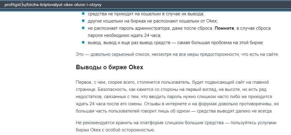 В данной публикации автор обзора о конторе ОКекс предупреждает, что не рекомендуется хранить деньги на этой бирже, потому что с этими мошенниками нужно быть очень осторожным.