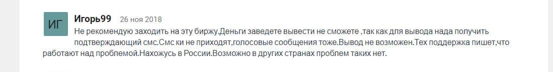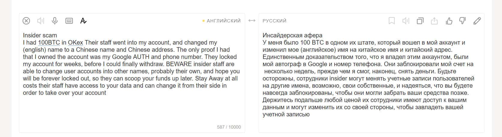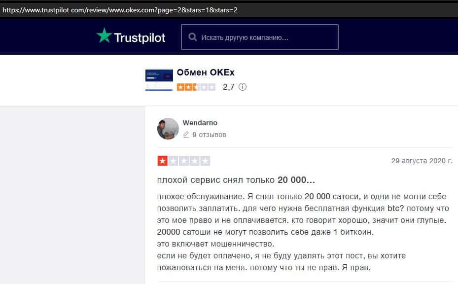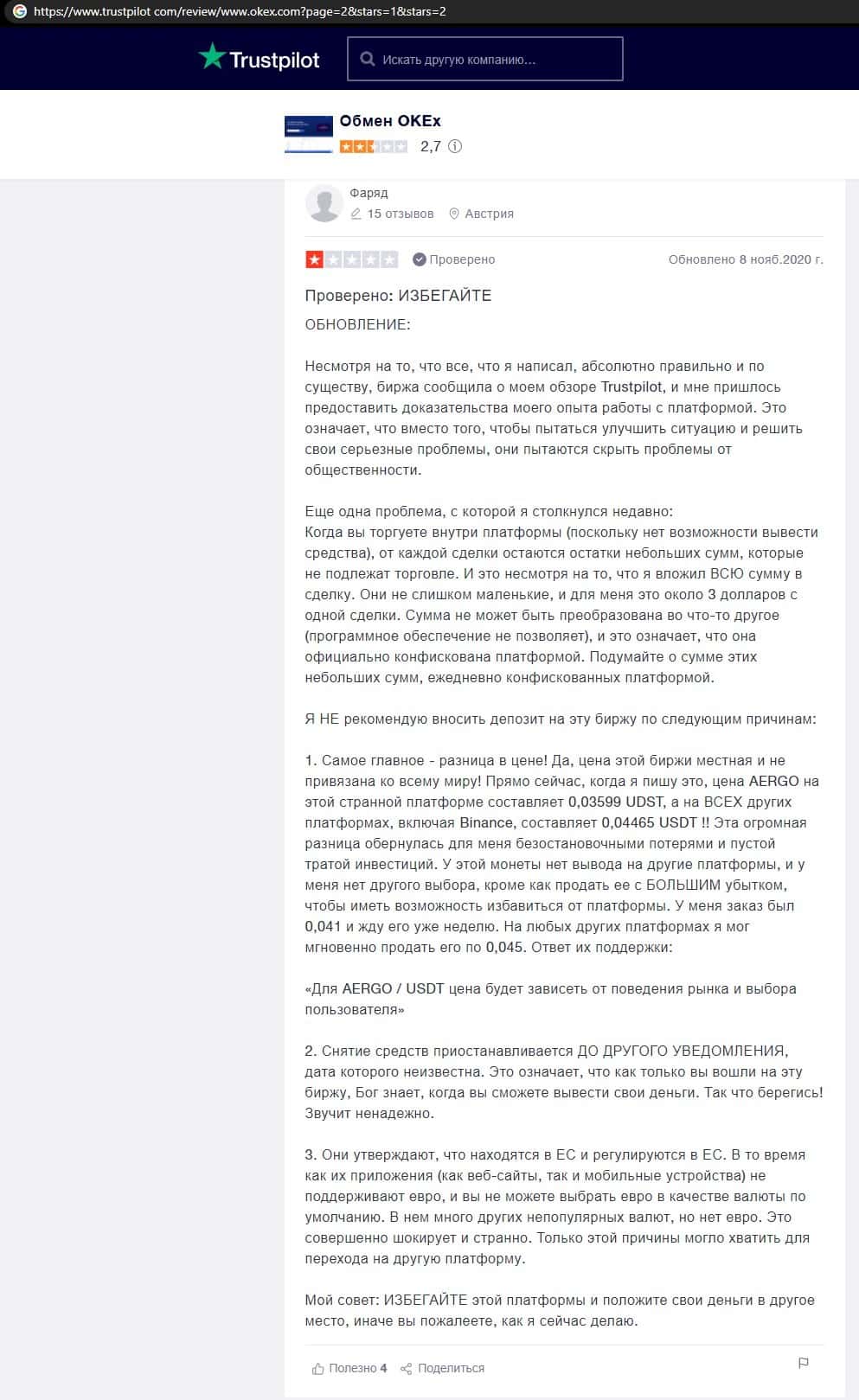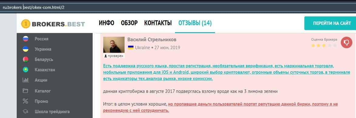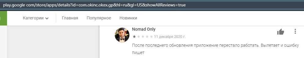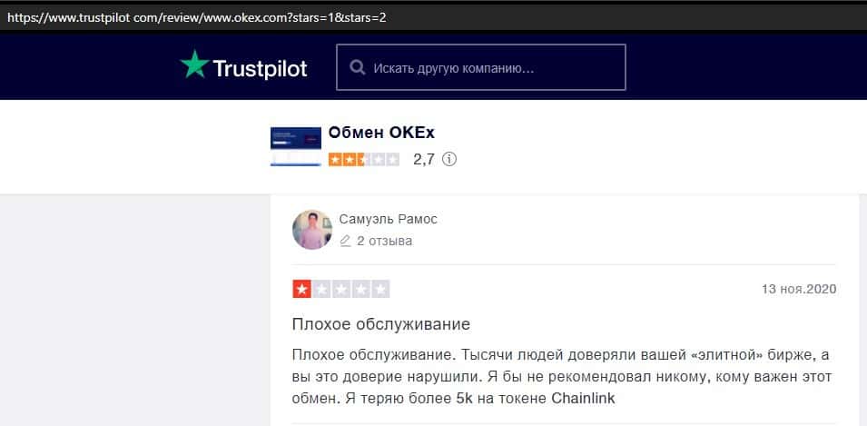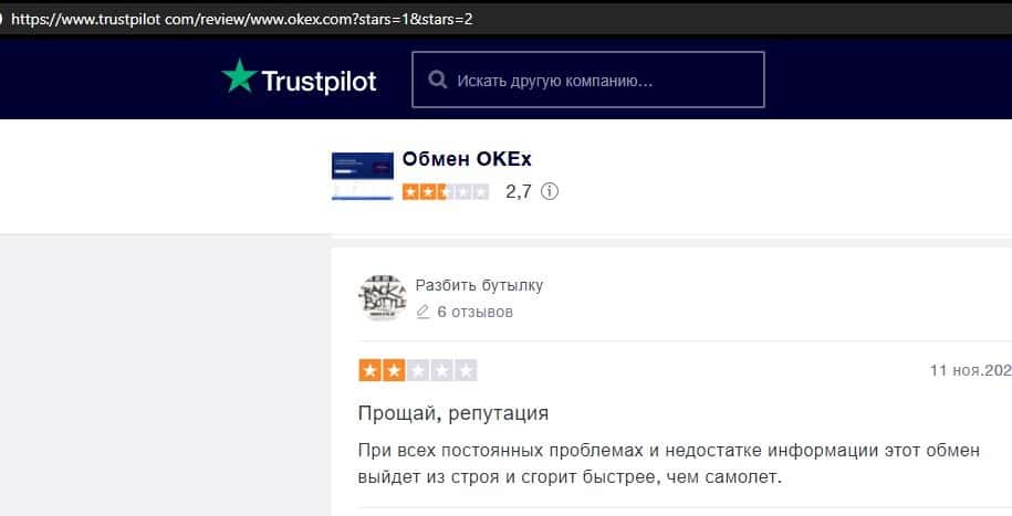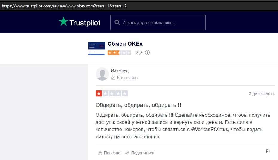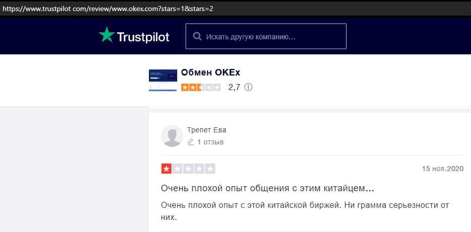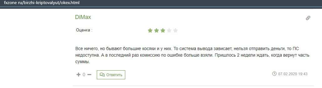 В очередном отзыве рассказывается, что контора OKEx прекратила снятие денег без какого-либо предупреждения. Некоторые пользователи рассказывают, что им так ничего и не вернули.