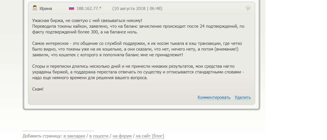 Пользователь Ventino написал, что у него сложилось очень плохое мнение об этой азиатской бирже. Он считает, что объемы торгов накрученные, цифры нарисованные. Вполне возможно, что запасов криптовалюты будет недостаточно, если все клиенты начнут выводить ее. Да и не факт, что ее вообще отдадут.