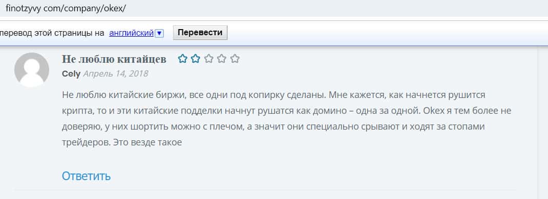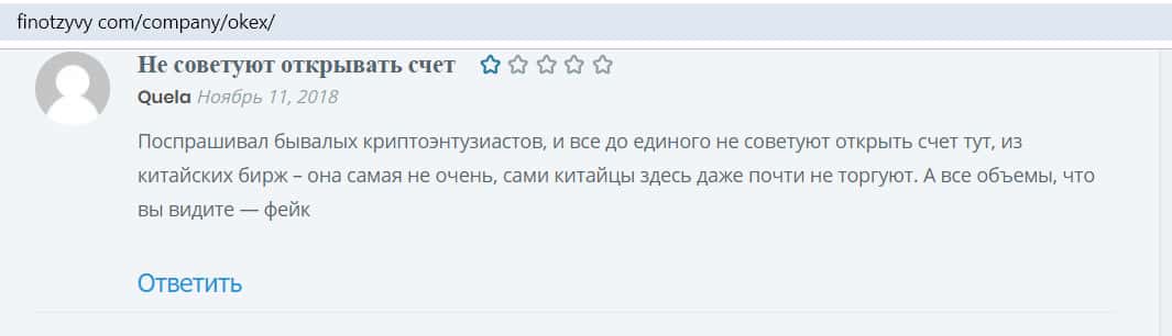 Англоязычный ресурс forexbrokerz com выложил множество негативных отзывов о бирже OKEx. Некоторые из них из Китая. Мейкин Ю пишет, что жулики украли у него биткоины. Несмотря на то, что биржа китайская и заявляет о себе, как о крупном ресурсе, мужчина никогда не слышал о них раньше.