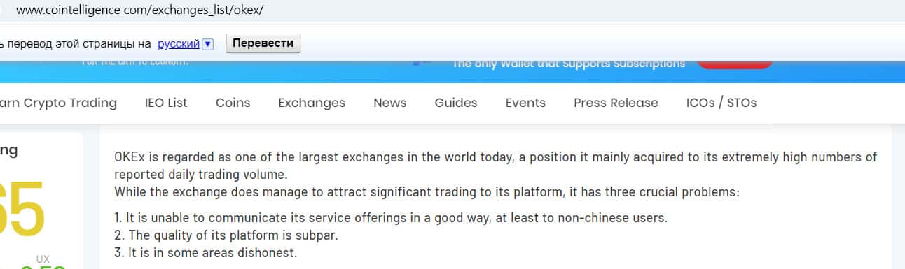 Англоязычный ресурс cointelligence com сделал обзорную статью на брокерскую компанию ОКекс. В ней говорится, что биржа действительно признается одной из крупнейших в мире, в основном, благодаря значительным объемам торгов. Тем не менее, у нее имеются очень серьезные проблемы.
