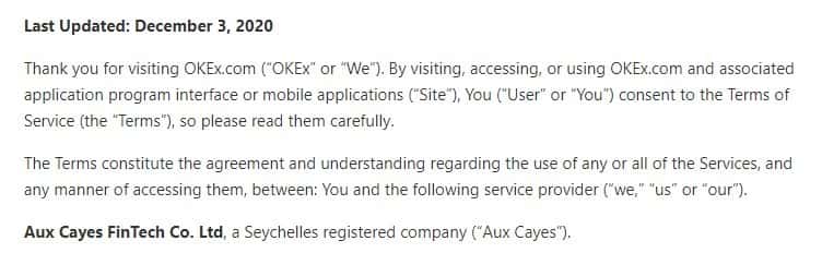 Исходя из информации, которая расположена на сайте кухни ОКекс, нам удалось узнать юрлицо Aux Cayes FinTech Co. Ltd, которое владеет шарагой и находится на Сейшелах.