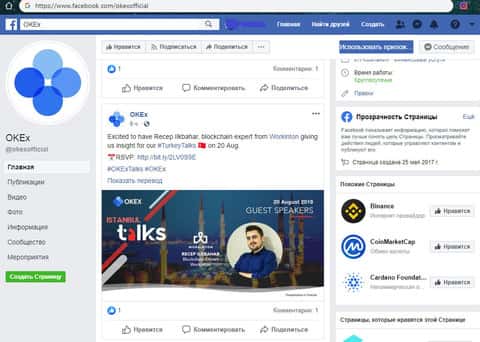 Дабы соответствовать современным трендам шулера OKEx решили обзавестись страницами в различных социальных сетях, одной из которых стал Facebook. Здесь мошенники ОКекс накрутили порядка двух десятков тысяч, о чем можно судить по крайне низкой активности подписчиков, которые вы можете увидеть на изображении, расположенном ниже.