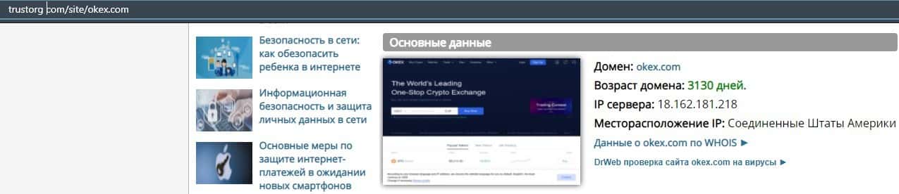 Домен шулерской конторы ОКекс имеет возраст свыше 3000 дней на момент написания статьи, можно предположить, что эта криптовалютная шарага купила домен у других жуликов.