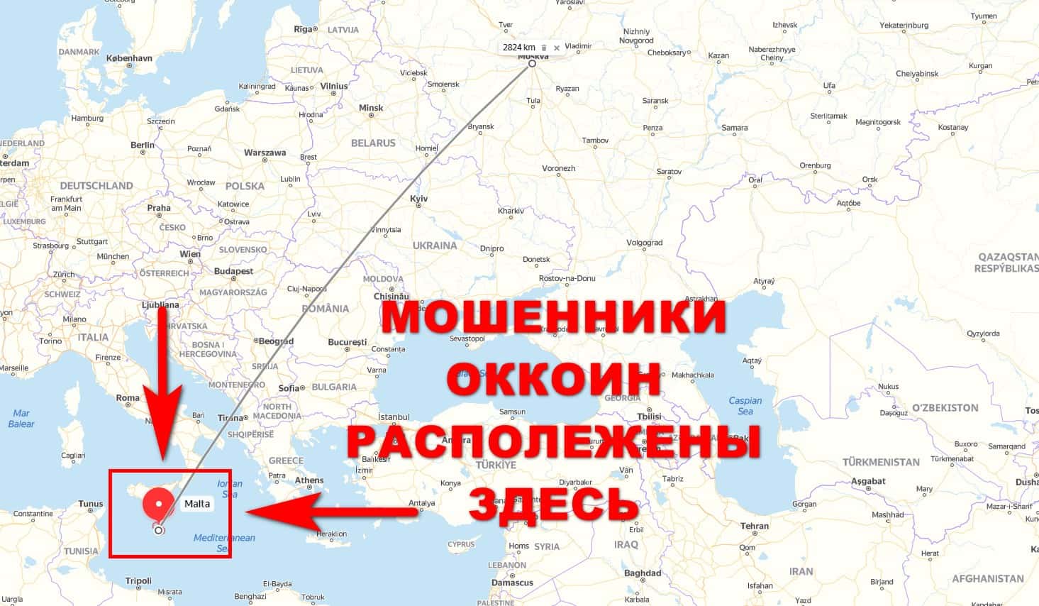 Далее представлена информация касательно того, что лохотронская организация ОККоин расположила свой главный офис на острове Мальта, который является оффшорной зоной.