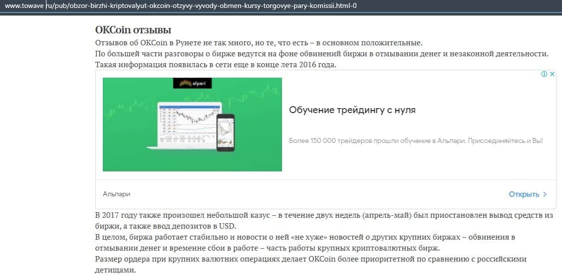 В данной публикации мы можем увидеть, что автор исследования не советует связываться с аферистами ОККоин. Там много недочетов, которые могут повлиять на результат торговли.