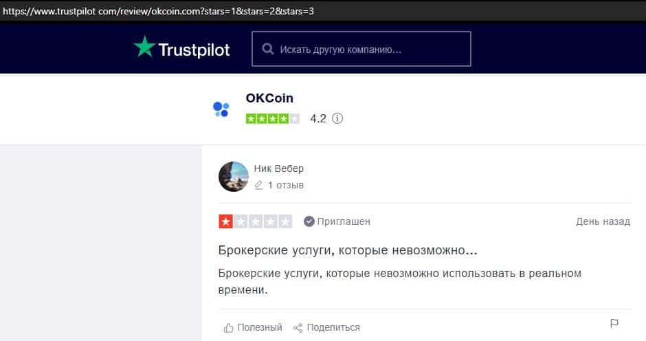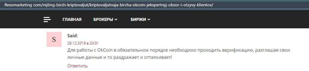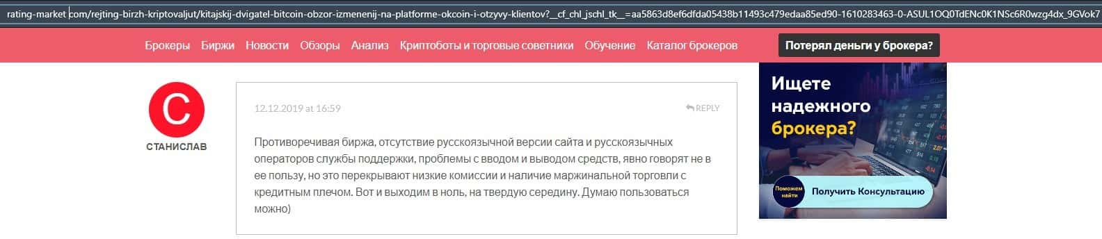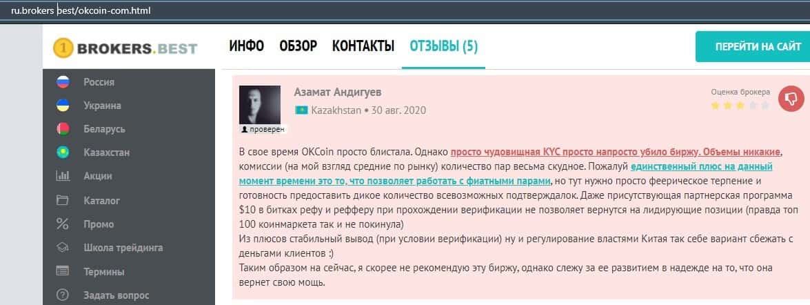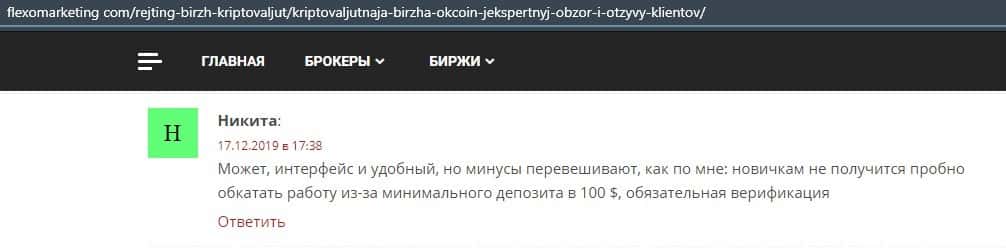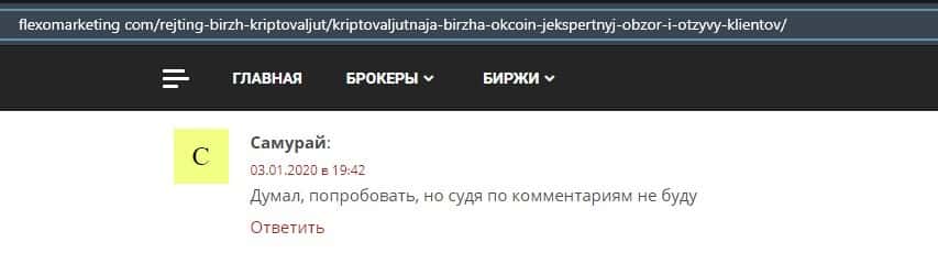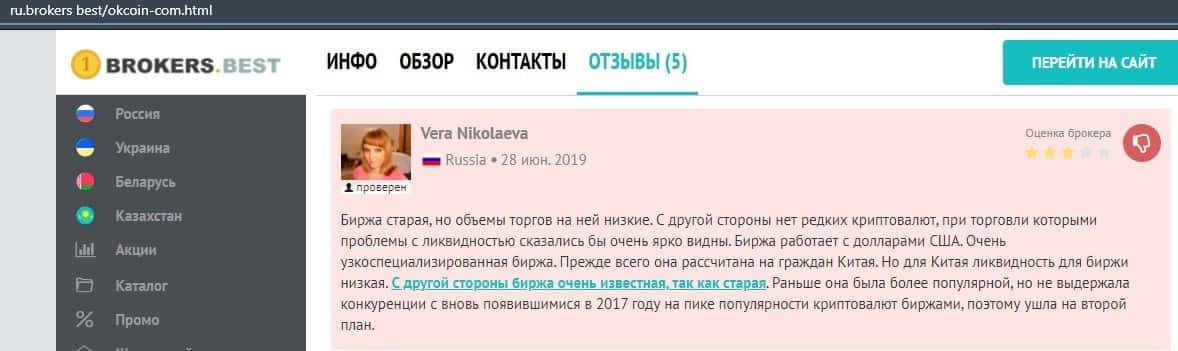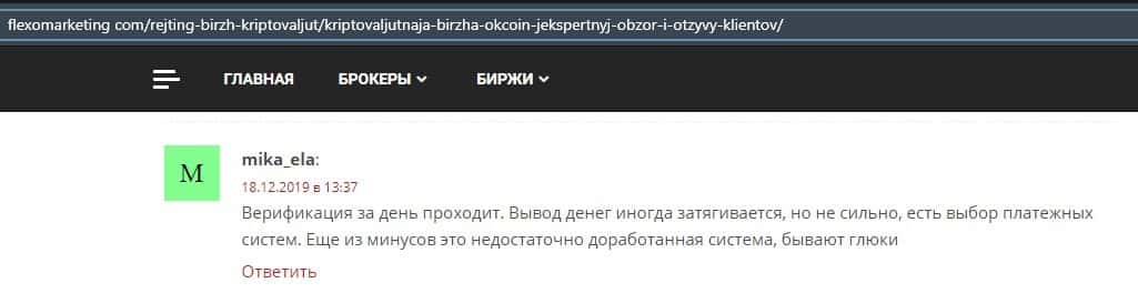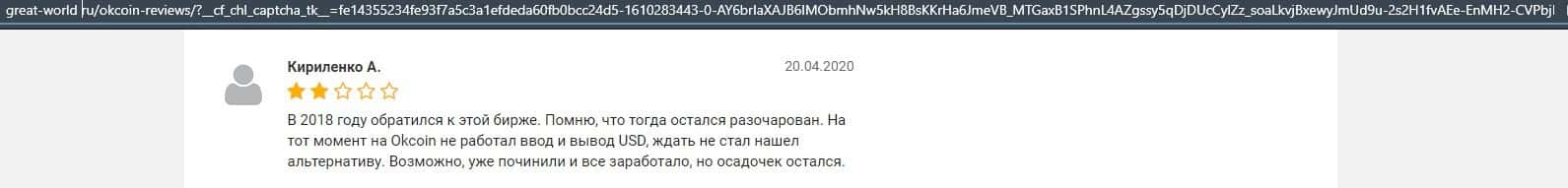Очередной пользователь сети указал в отзыве, что контора ОККоин престала развиваться, поэтому он бы не рекомендовал биржу для совершения торговых операций с криптовалютой.