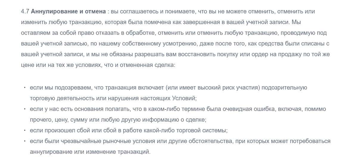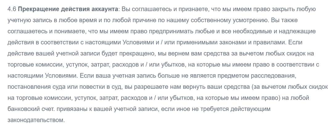 ОККоин также указал в договоре, что он может попросту прекратить работу вашего аккаунта. При чем в этом случае они причину указывать не будут, а деньги отдавать тем более.
