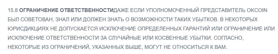 В договоре аферистов ОККоин, они ограничили себе ответственность перед клиентами касательно убытков и потерь, которые они понесут в процессе использования сервисом кухни.