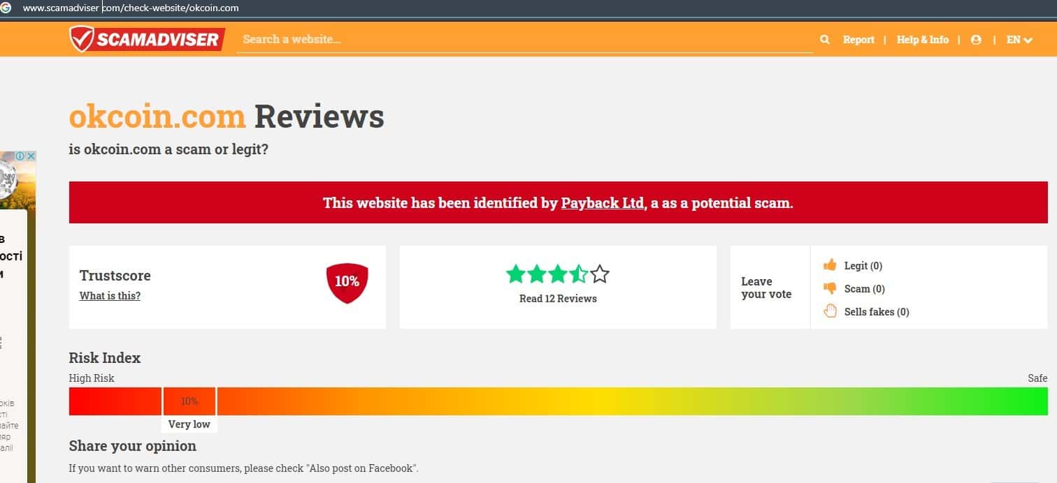 - Согласно скамадвайзера портал okcoin com лучше не посещать