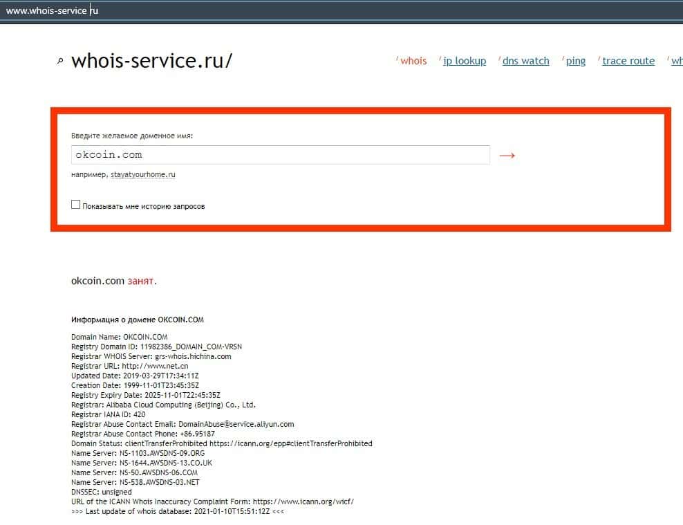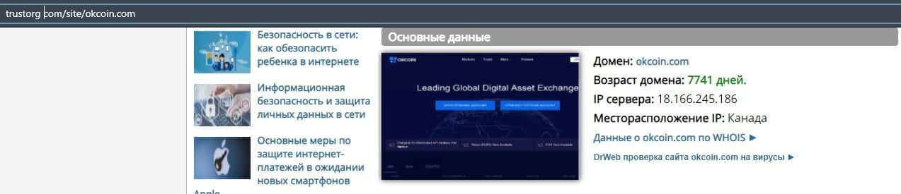 - Возраст домена ресурса аферистов OKCoin