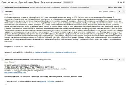 Обман клиента со стороны конторы Гранд Капитал и их "собачки" Оксфорд Груп