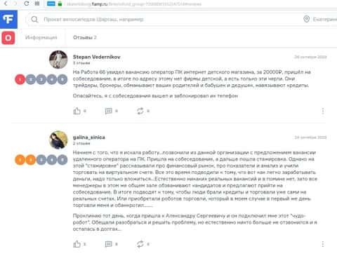 Еще несколько человек попалось на удочку к несуществующей уже конторе Оксфорд Груп. Аферисты на тот момент прикрывались на сайте работодателей под вакансией оператор ПК для детского интернет-магазина, а также удаленного оператора ПК. Но на деле, когда уже была встреча в офисе, стали рассказывать про финансовые рынки и вымогать деньги. Кто-то велся на это, а кто-то просто вышел с такого собеседование и заблокировал их номер телефона.