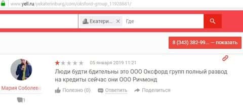 Тот сам отзыв, в котором сказано, что офис конторщиков Oxford Group теперь занят другой конторой - ООО Ричмонд. Они это или нет, пока непонятно.