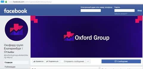 Так выглядела группа Оксфорд Груп в социальных сетях Facebook. Аферисты пока ее не закрыли, и последний пост в группе был 16 октября 2018 года. Группа находится по адресу: facebook com/oxford.group.ekaterinburg.otzyvy .