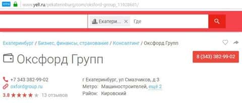 Мошенническая контора Оксфорд Груп, когда работала на полную катушку, располагала свой офис по адресу: г. Екатеринбург, ул. Смазчиков, д. 3. Теперь там ее скорее всего офис уже другой конторы. Как рассказал один пользователь сайта yell ru, по этому адресу теперь находится ООО Ричмонд, которые занимаются втиранием липовых кредитов, то есть сферу оставили ту же, только вид деятельности немного поменяли.