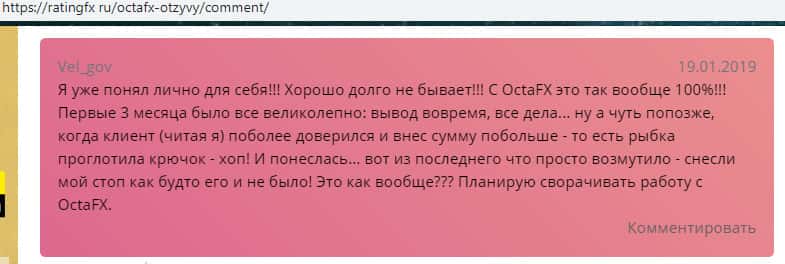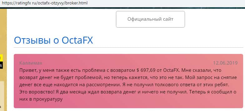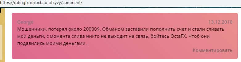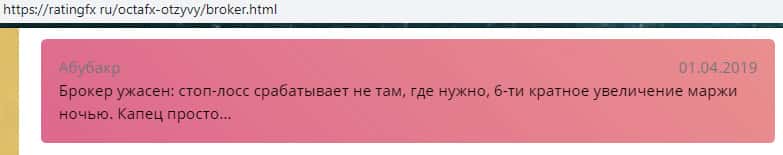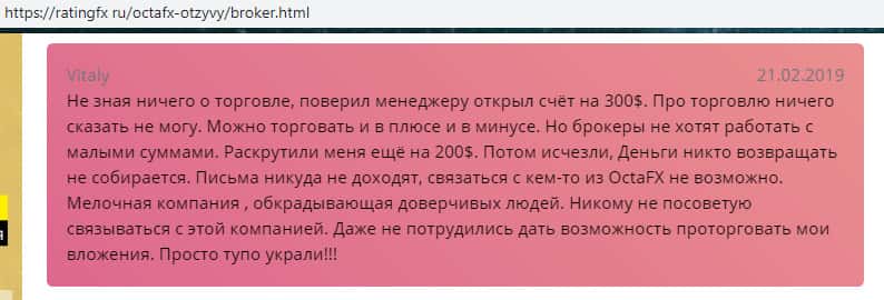 Еще один отзыв о жулье OctaFX с портала ratingfx ru