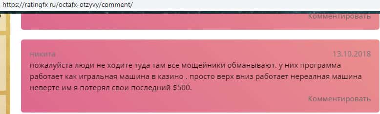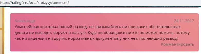 - Еще один отзыв о жулье OctaFX с портала ratingfx ru